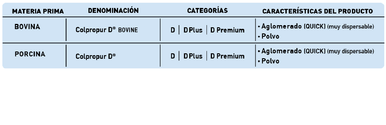 COLPROPUR D® está destinado a la venta industrial, especialmente a empresas dedicadas a la fabricación de alimentos funcionales o complementos alimenticios, que quieran incorporar a sus productos las propiedades de salud de este ingrediente proteico.